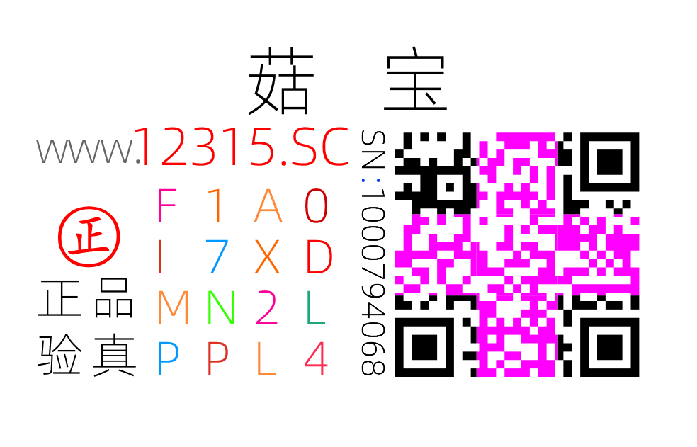 1、标签上的【滋补堂】、【菇宝】为示例,实际为对应的品牌。防伪码的颜色会因批次或时间而不相同。