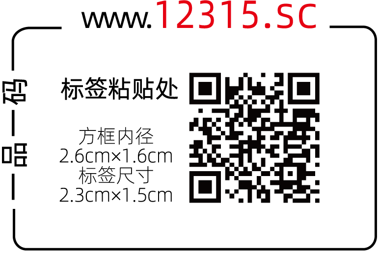 包装上印刷有【一品一码】及网址【www.12315.SC】如上图所示。